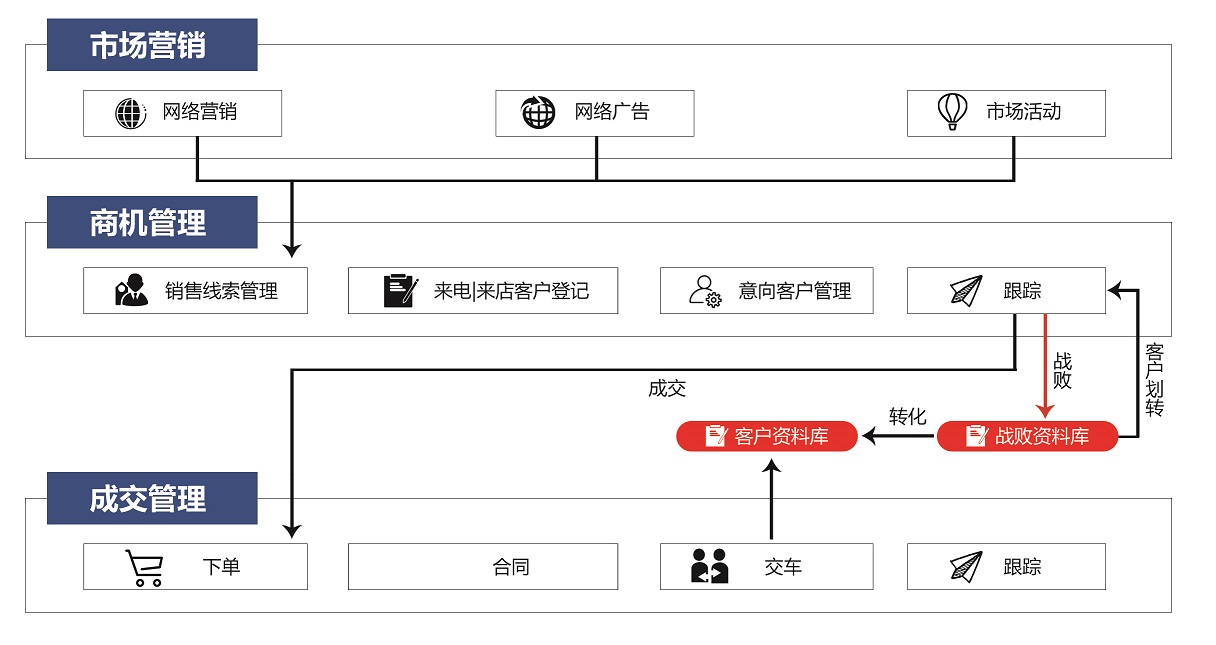 銷售管理人員不用再去問銷售顧問,每個(gè)顧客的成交進(jìn)度條,系統(tǒng)自動(dòng)生成,手機(jī)可以檢索顧客電話、哪個(gè)車型有多少潛客隨時(shí)查詢、成交后顧客的系統(tǒng)要求強(qiáng)制跟進(jìn);